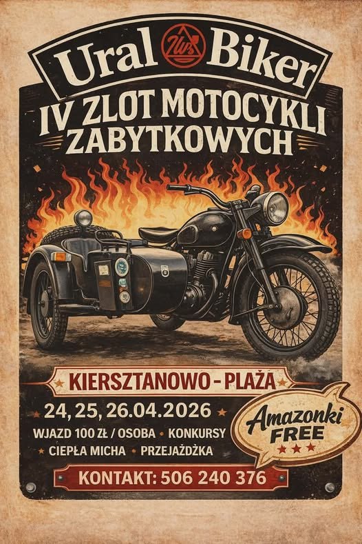 IV Zlot Motocykli Zabytkowych w Kiersztanowie na plaży. W programie konkursy, ciepła miska oraz przejażdżka. Amazonki uczestniczą bezpłatnie.